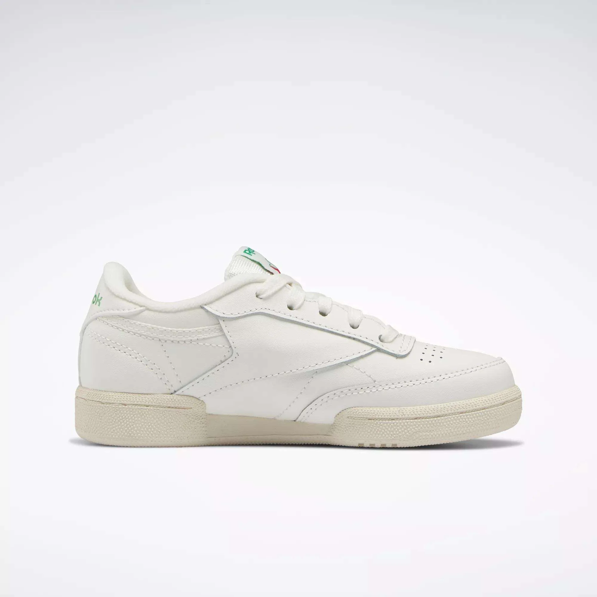 Clean and crisp. These boys' Reebok shoes stay true to their classic '80s style with a smooth leather upper. Symmetrical stitching gives this tennis icon its signature shape. The soft midsole keeps kids comfortable with every step, whether they're wearing them at school or while playing in the yard with friends.