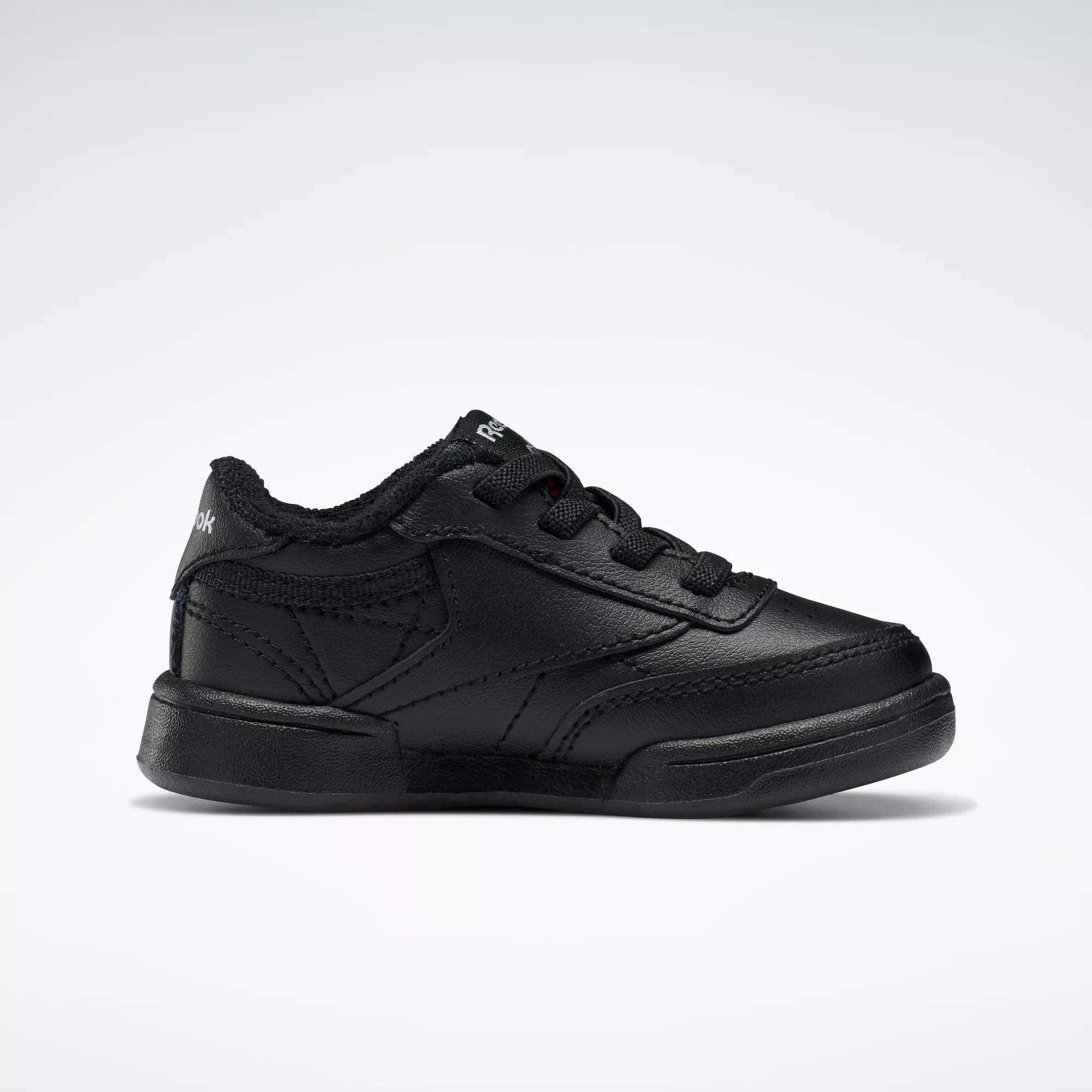 Baby's first pair of Reebok's. These tiny Club C shoes are a classic sneaker style for toddlers who are ready to roam. The soft leather upper and flexible outsole offers comfort and support for each stride. Stretch laces ensure low-stress on and offs.